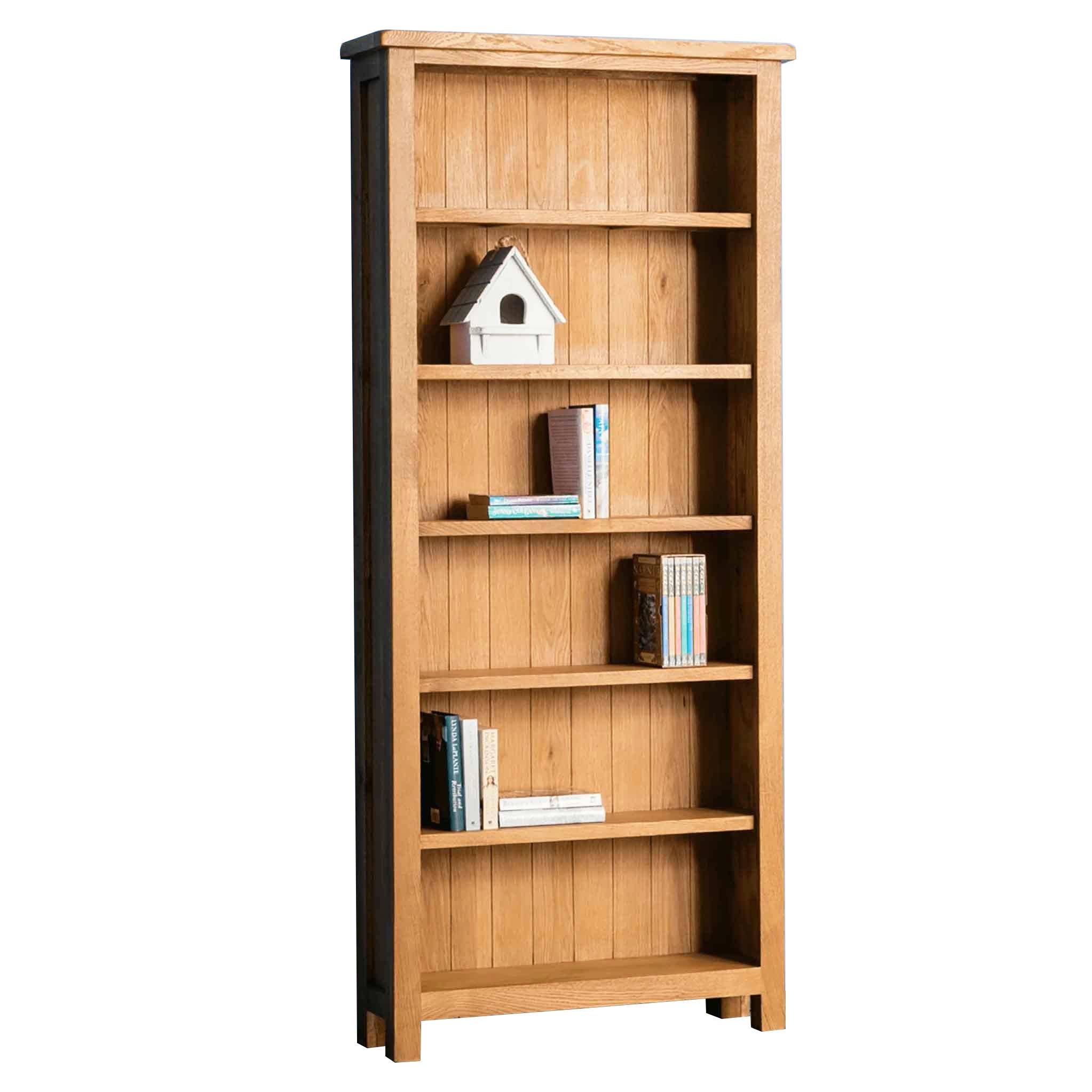 This large rustic oak bookcase is part of our Surrey Oak range and crafted from quality oak and selected hardwood. Designed to provide useful storage with its 6 tall shelves it's narrow design means it can easily be incorporated into a hall or living room. The shelves are fixed and therefore nonadjustable.