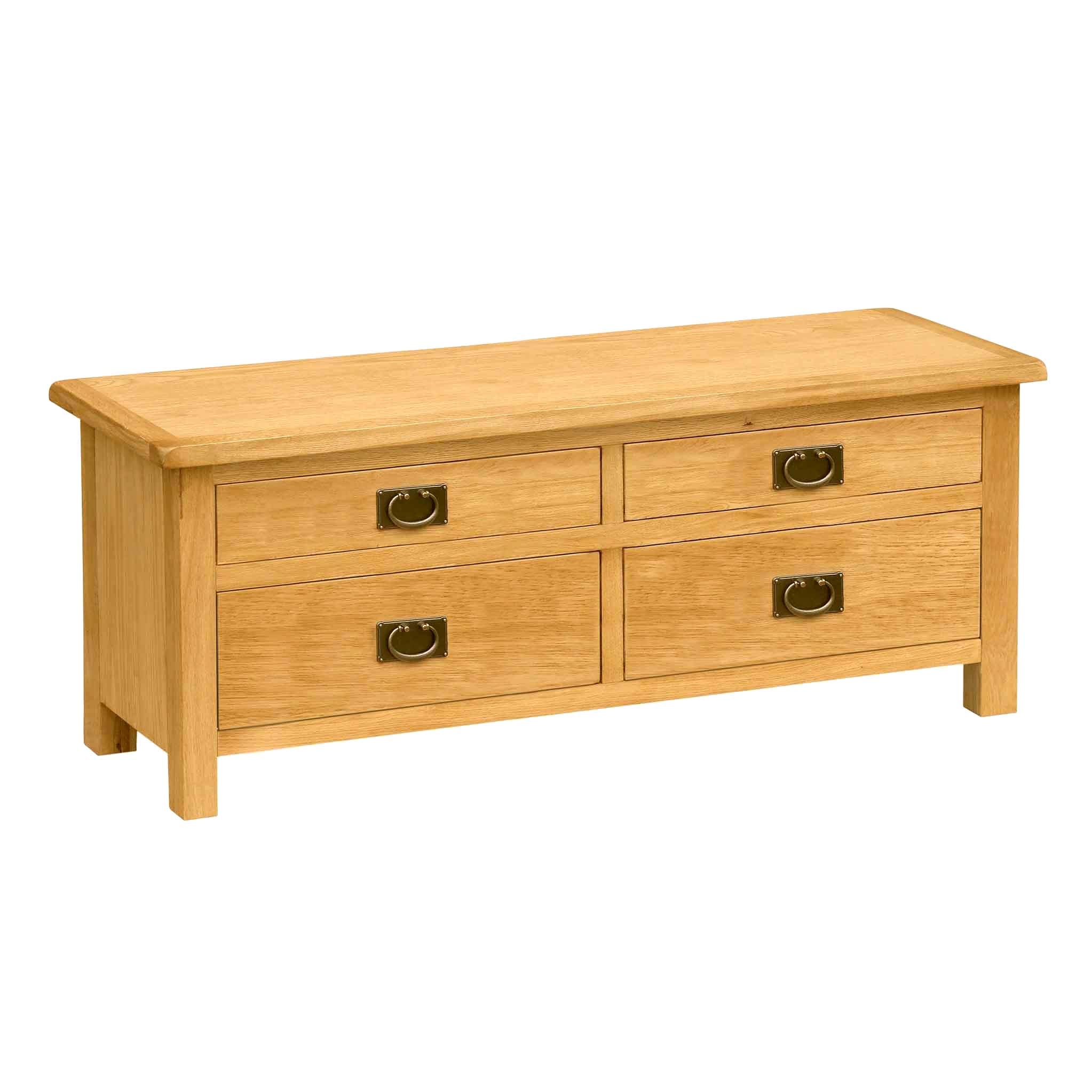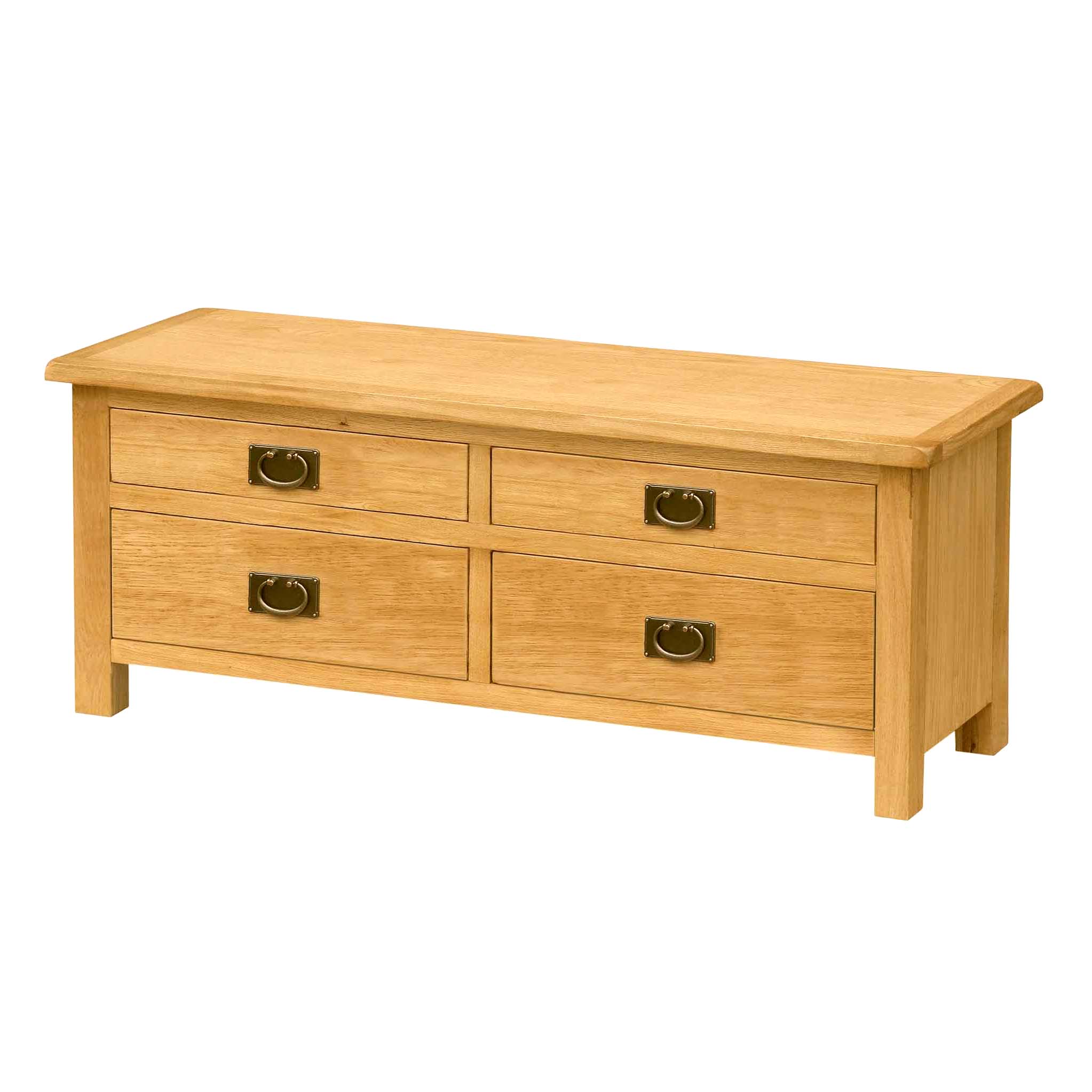 Part of our Surrey Oak Range, this is the larger of two sizes of our rustic oak television stands available. Designed initially as a stand for modern smart TVs that have no need for a shelf. However, during the design process, it quickly became apparent its an extremely versatile piece that can be used for storage in any room of the house such as in the hallway as a bench or the end of the bed.