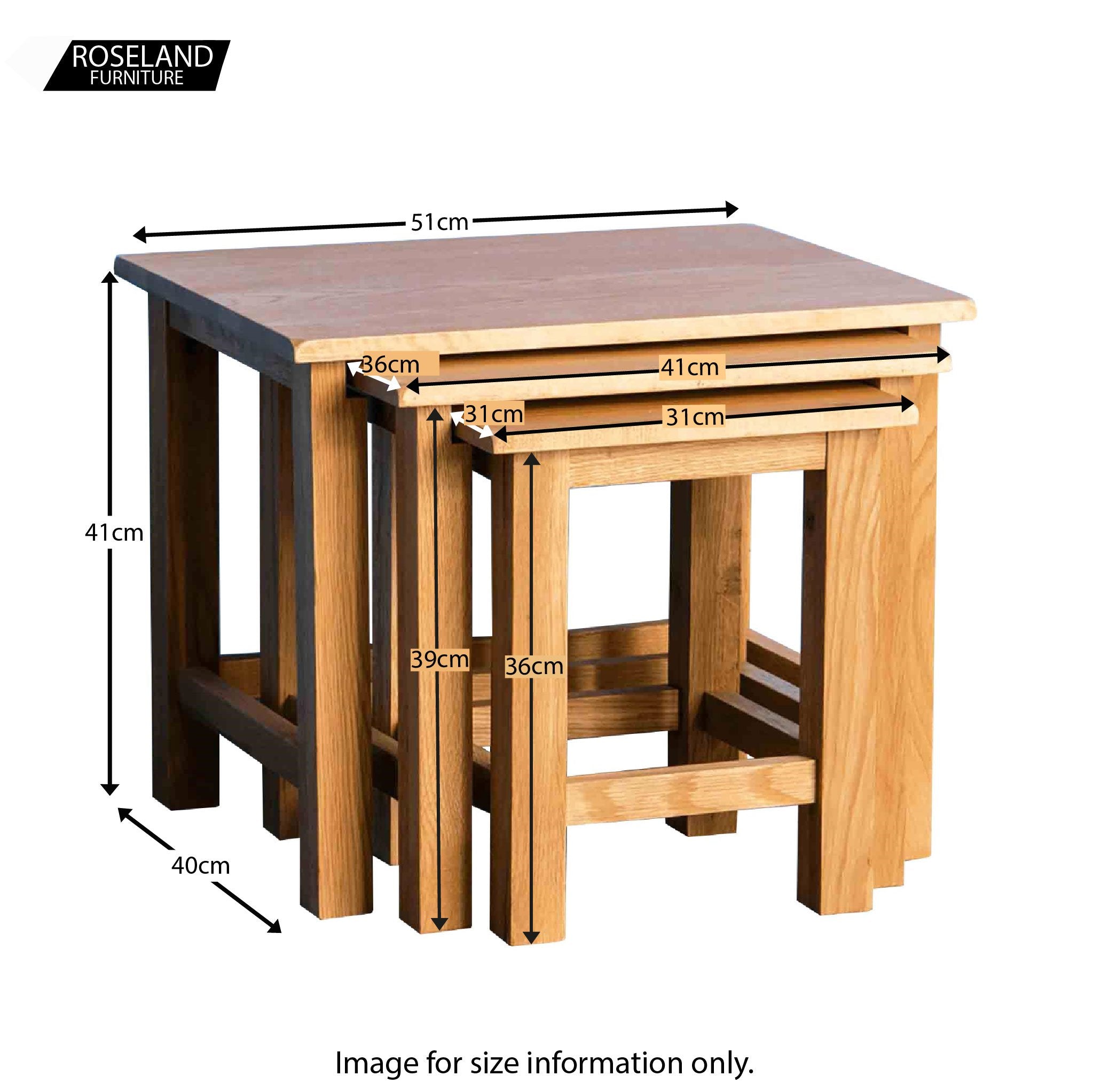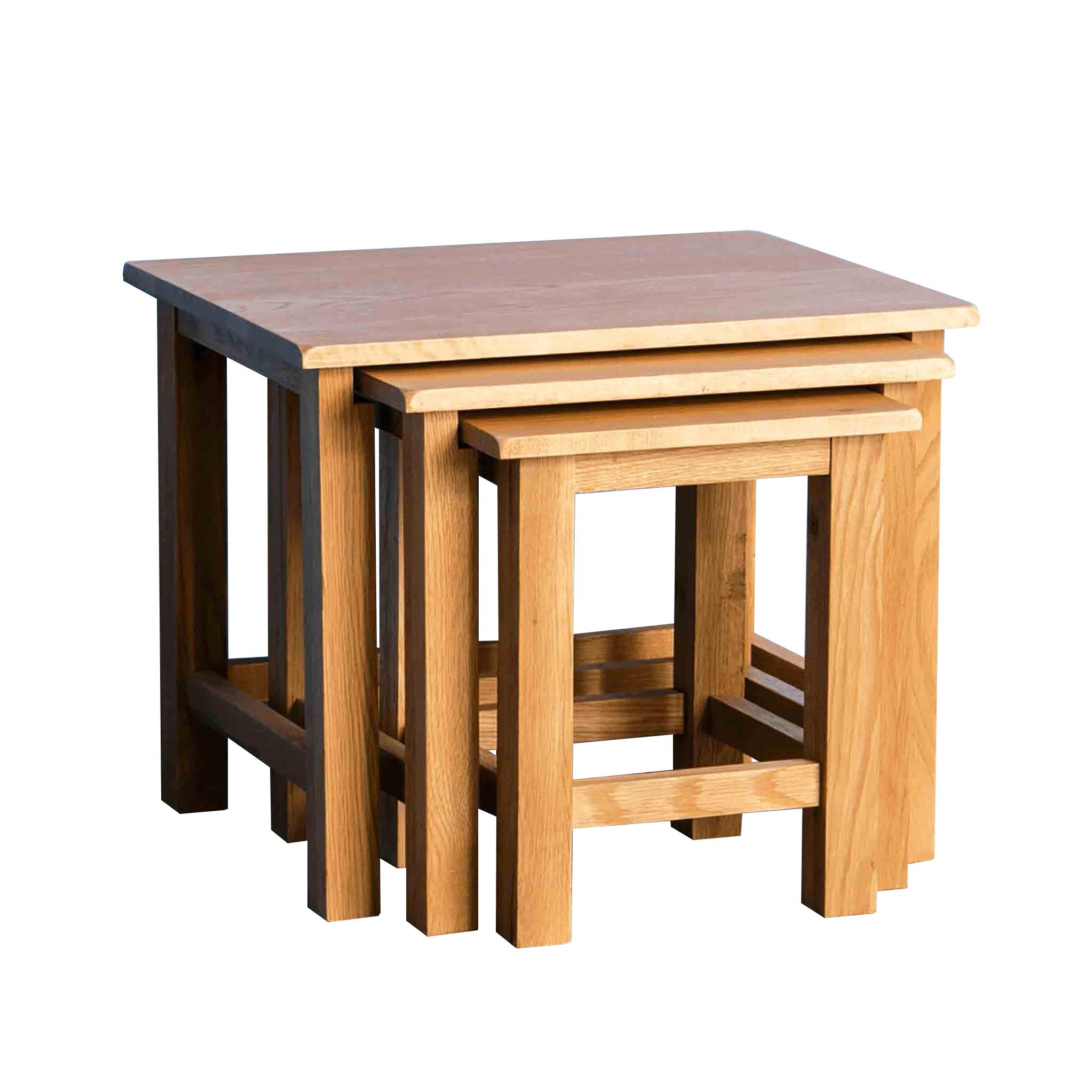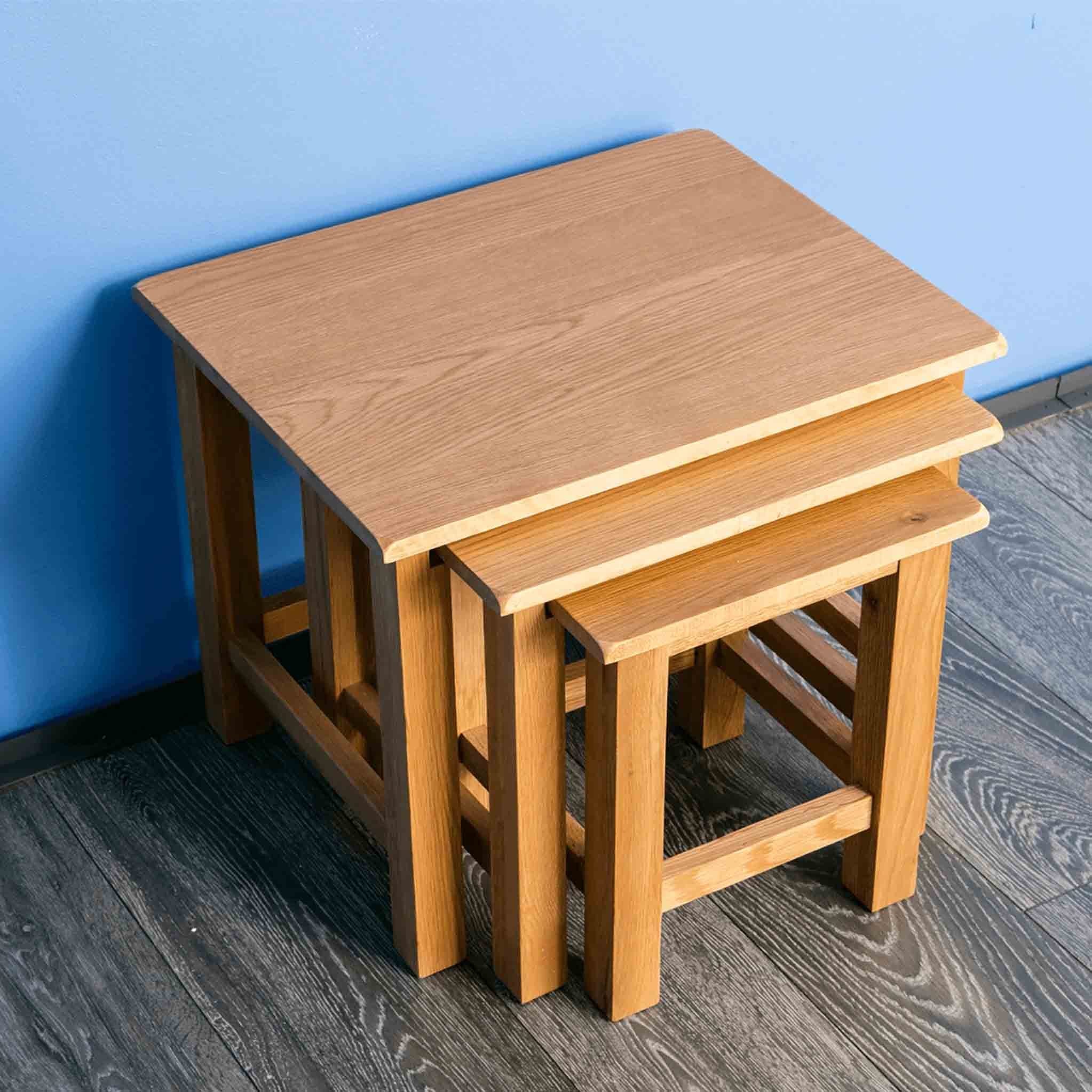 • Includes 3 nested tables built from solid wood with waxed real oak tops.