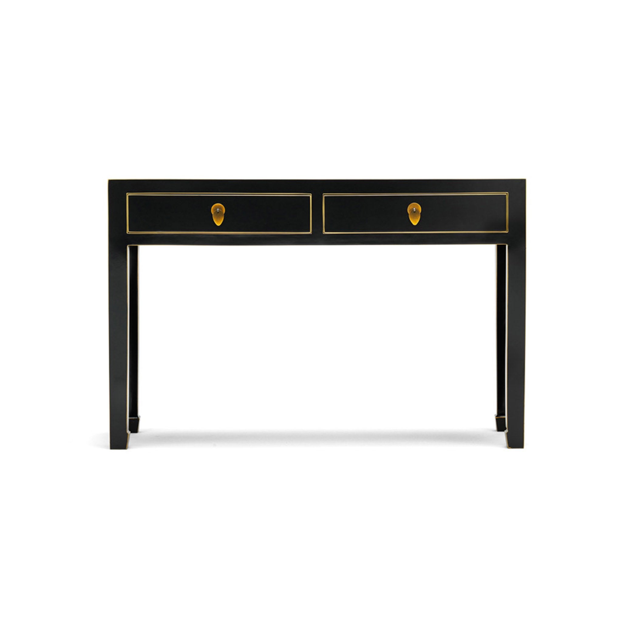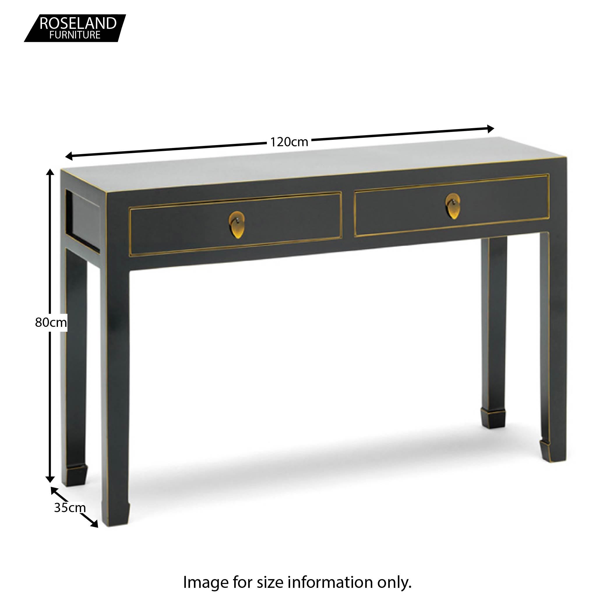 This stunning but practical statement piece will bring style to any sitting room or hallway. Built and finished to an extremely high standard, it's crafted from poplar and plywood with a rich black paint which is edged in gilt and has eye-catching handles to the drawers.