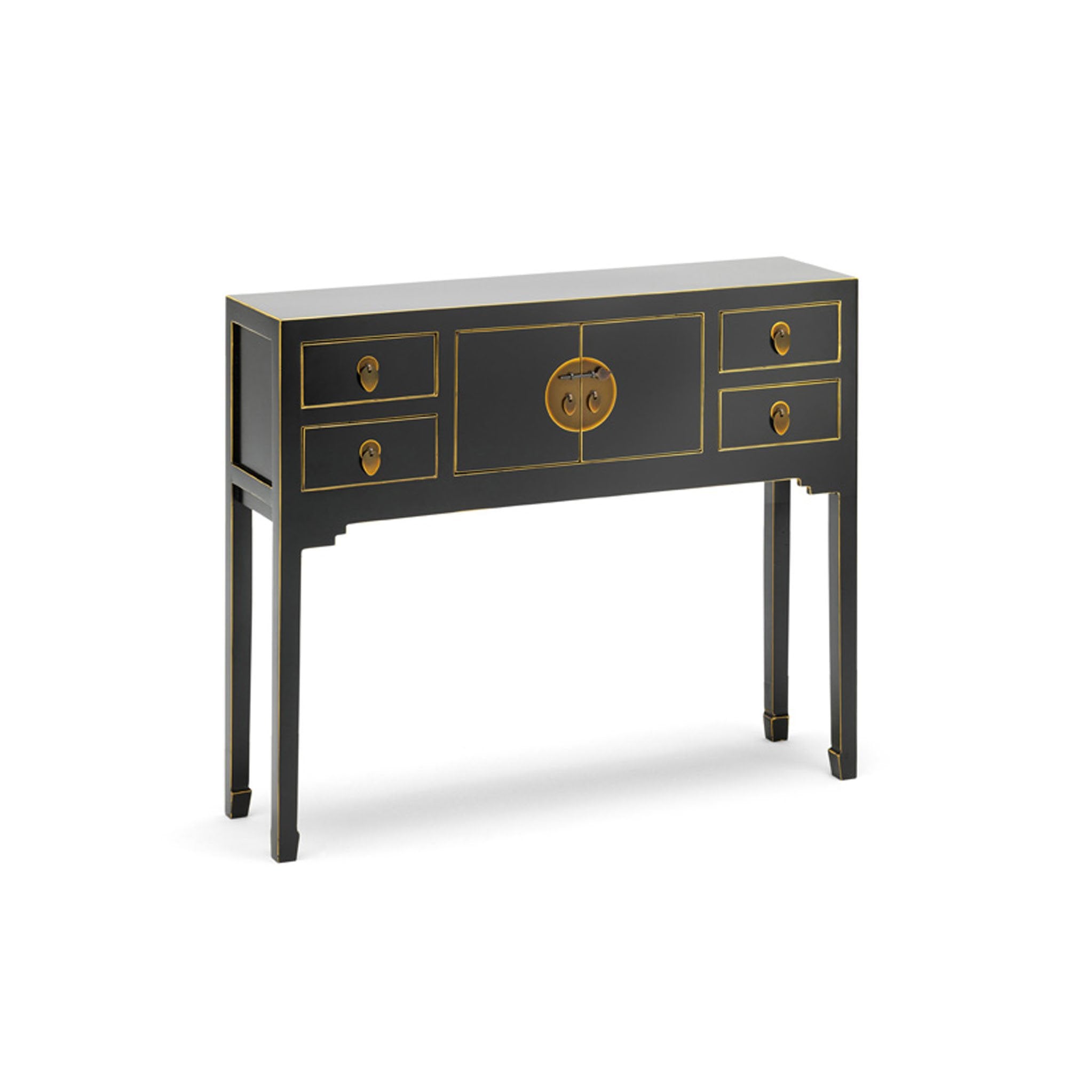This stunning but practical statement piece will bring style to any sitting room or hallway. Built and finished to an extremely high standard, it's crafted from poplar and plywood with a rich black paint and gold gilt edging.