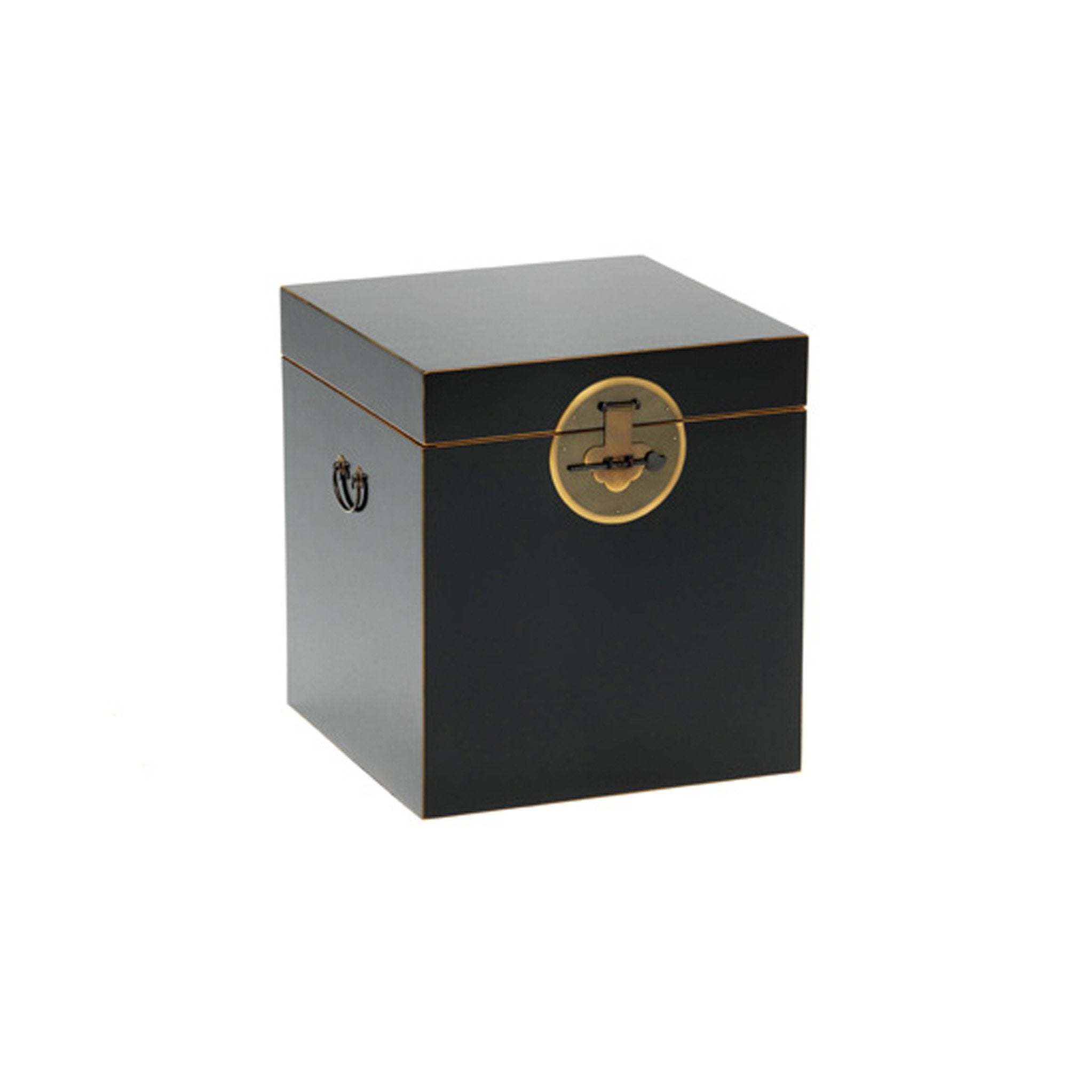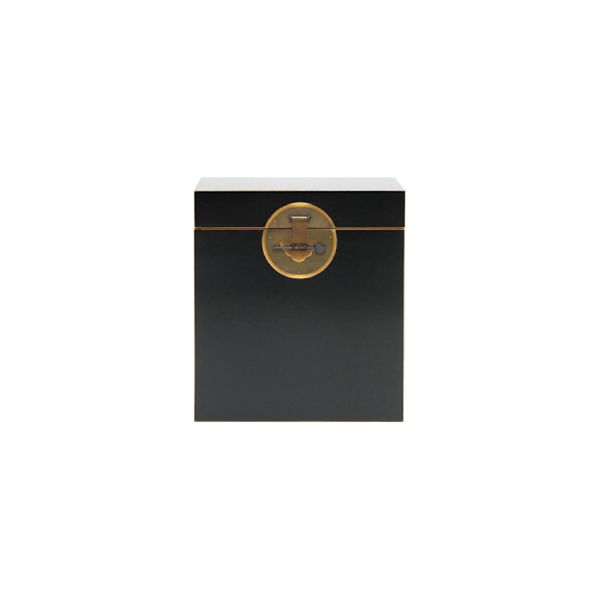 This is a great little storage chest that also doubles as a side table. It's crafted to a very high standard from poplar wood and plywood and finished with a beautiful bold gloss black paint. Its intricate gold gilt edging makes this a real statement piece.