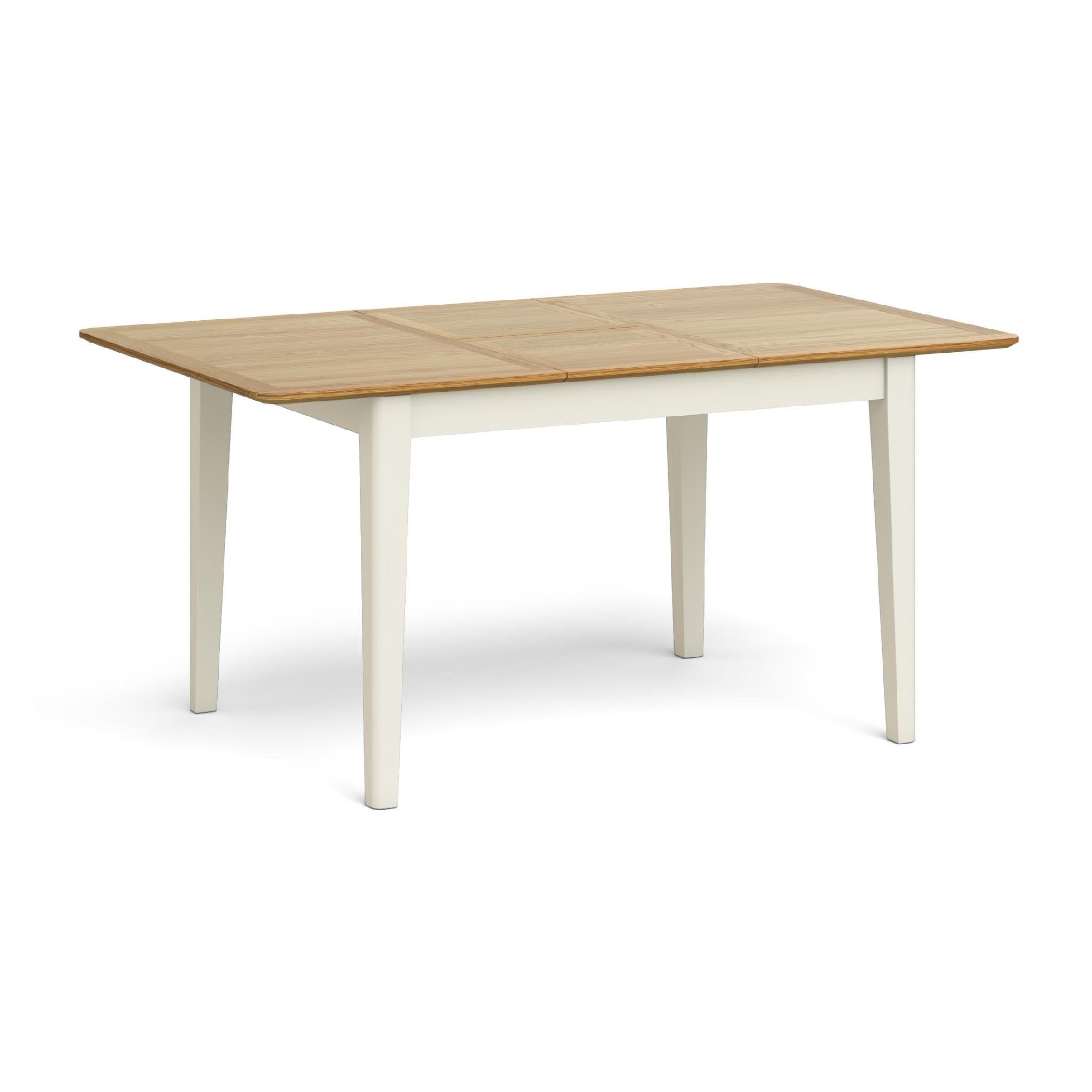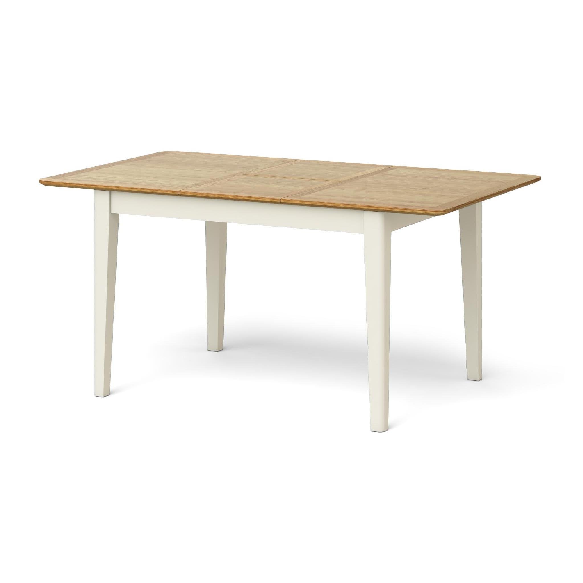 The Winsdor Cream Extending table is a great piece of furniture for the dining room, especially where space is short. The simple to use folding leaves mean this table can be extended from 120cm to 160cm and the oak top with solid oak edges creates a light and airy, natural feel. The satin painted cream legs are a beautiful touch, which are easy to wipe clean.