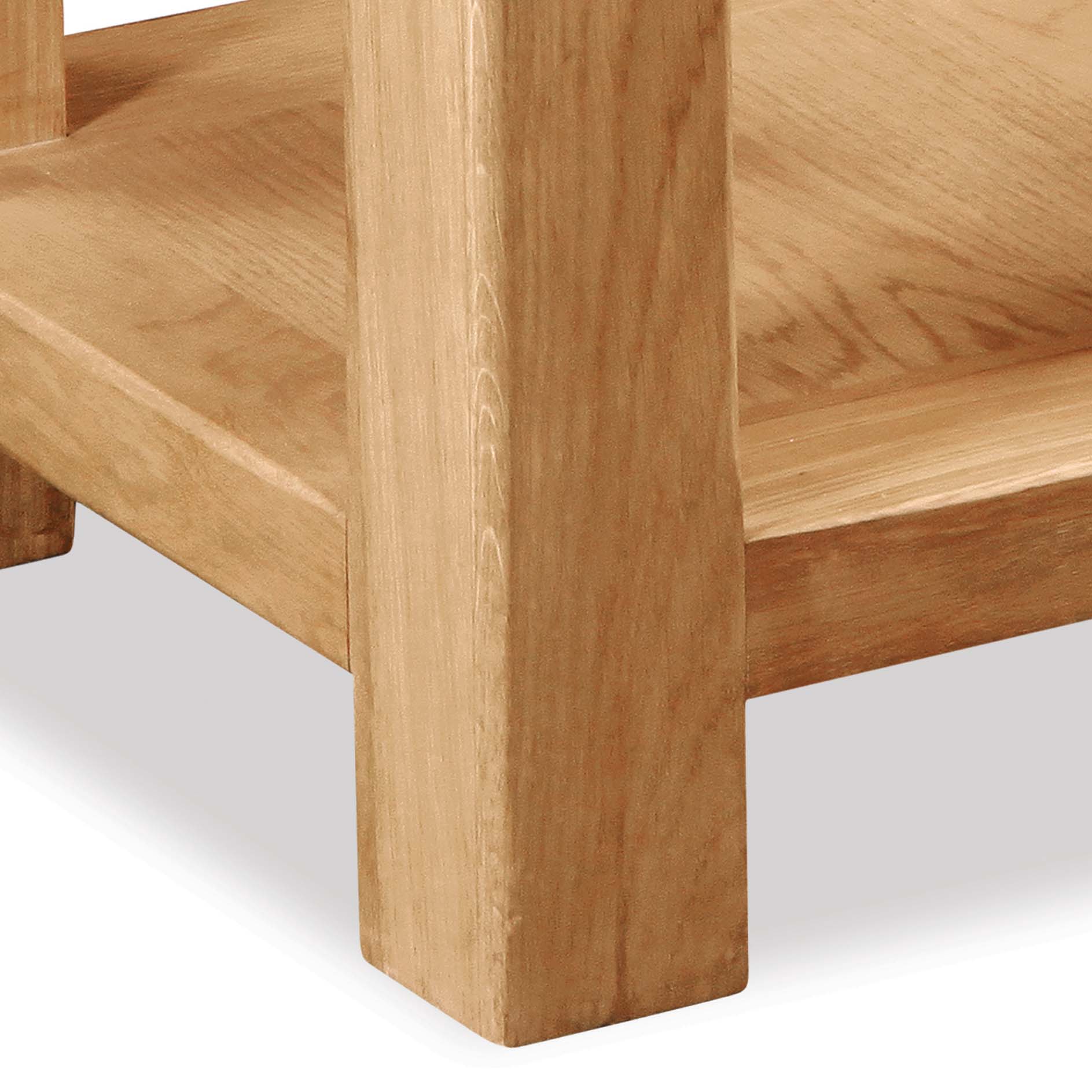 The Zelah Oak Lamp Table with Drawer is an ideal addition to any living area. It features a drawer for storage as well as a shelf below. Perfect for the living room as an additional coffee table or lamp table this item is handmade from high-quality oak. The rounded edges of each piece gives the room an impressive country look that only adds to the rustic charm. There are many more rustic oak items within the Zelah range that complement each other so please take a look around our shop.