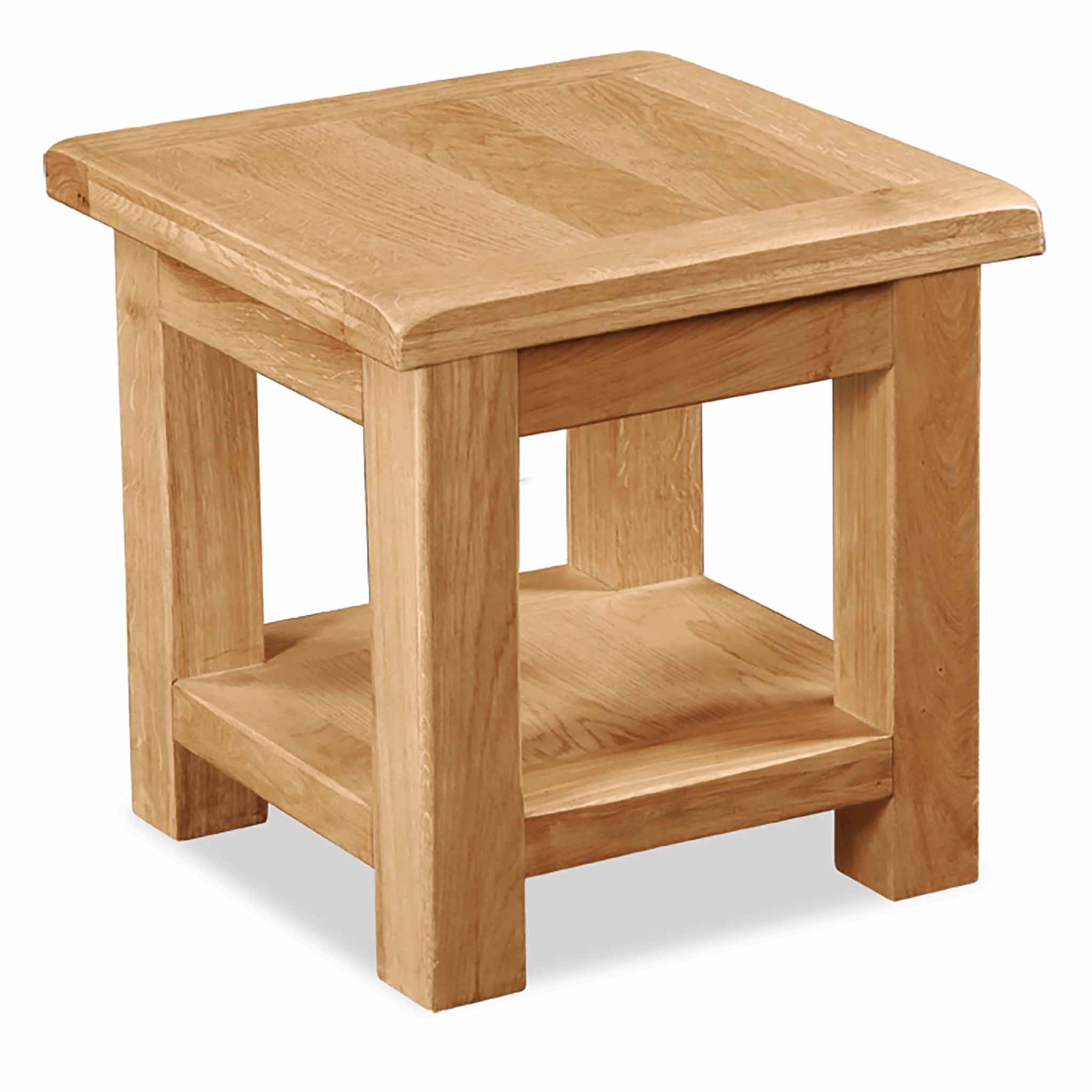 Our Zelah oak square lamp table is an ideal addition to any living area. Perfect for the living room as an additional coffee table or side table this item is handmade from high-quality oak. The shelf below is great for storing magazines. The rounded edges of each piece gives the room an impressive country look that only adds to the charm.