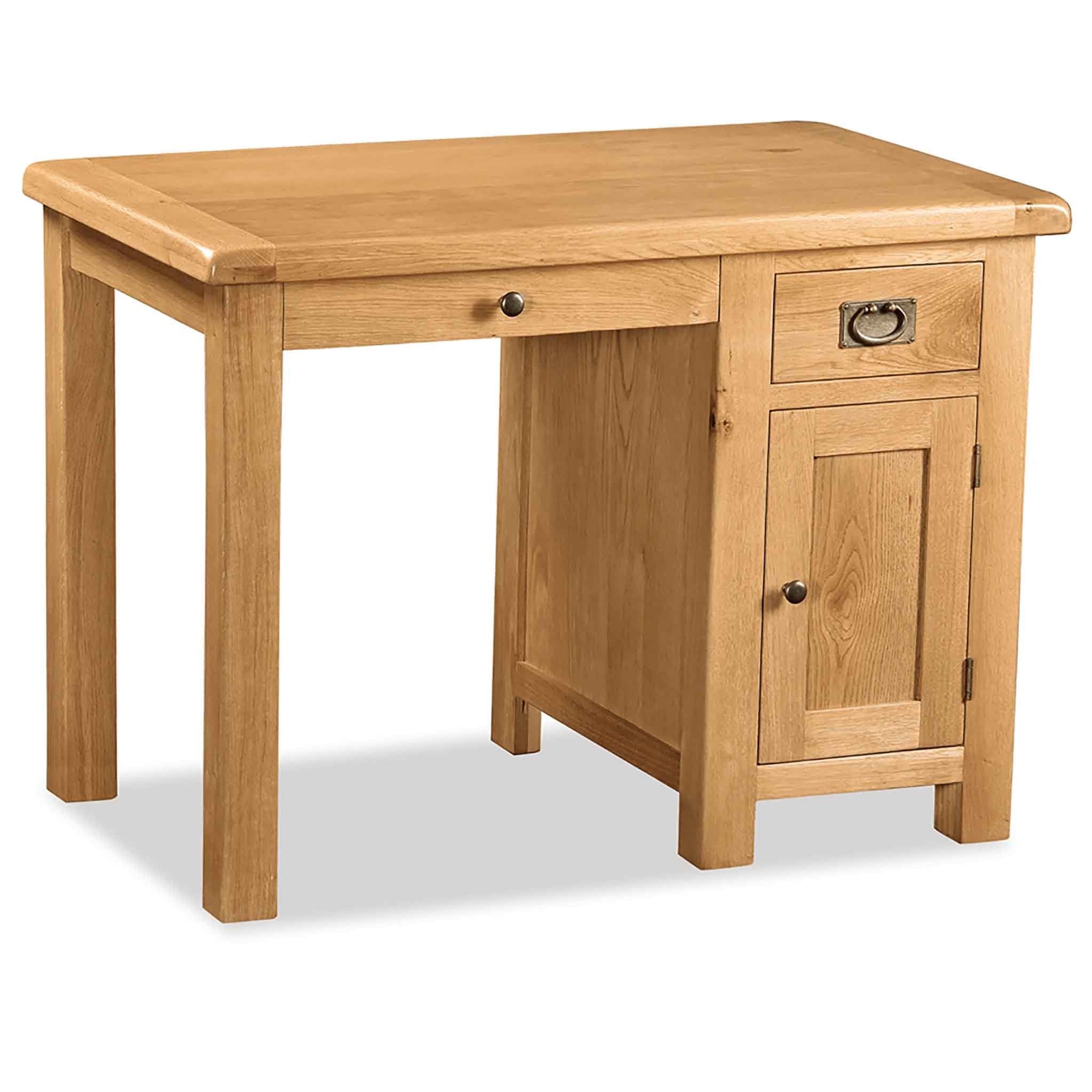 This Zelah oak small computer desk is a fantastic addition to the smaller home office or study. It features a drawer on the right side as well as a cupboard for extra storage. The depth of the desk certainly hasn't been compromised by the compact design which adds to the practicality. Handmade from high-quality oak, the rounded edges of each piece gives the room an impressive country look that only adds to the charm. If you are looking to find another item to perfectly match this desk, view our wide range of rustic oak bedroom items all of which complement each other perfectly.
